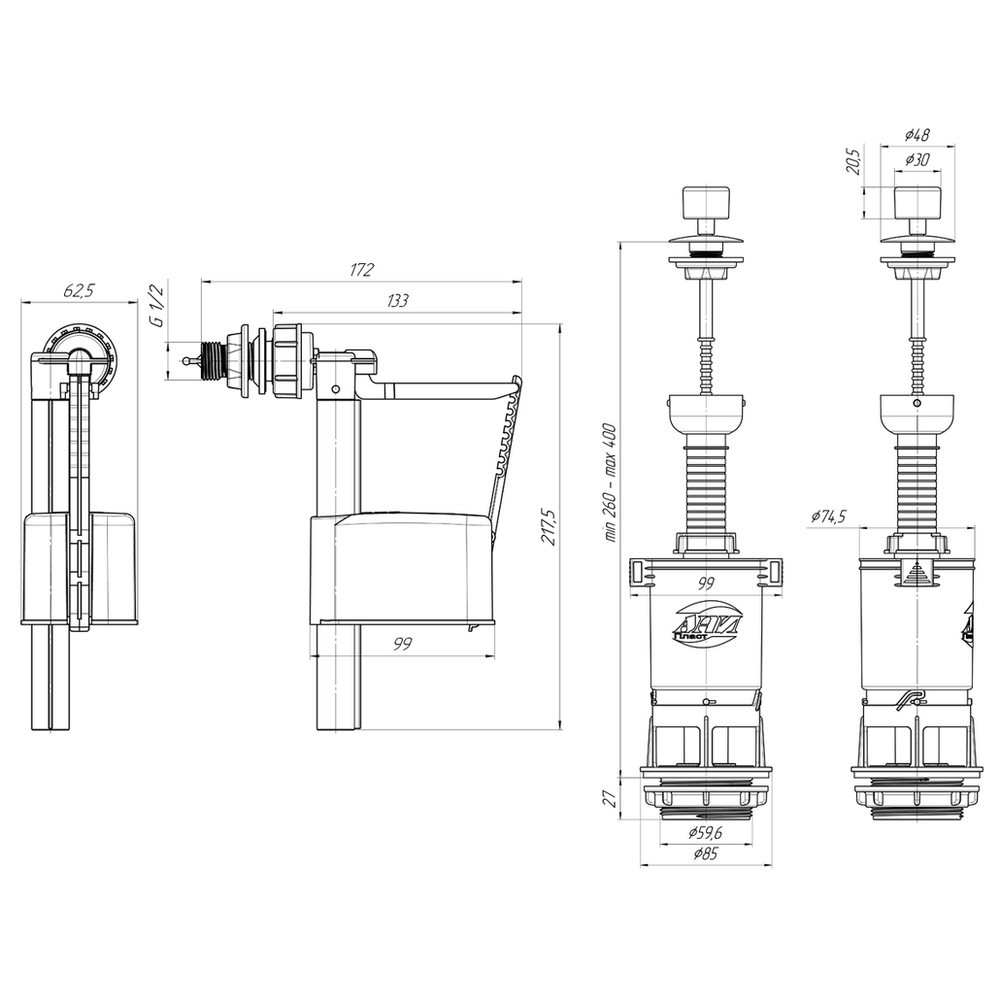 Арматура для унитаза универсальная АНИ WC4050M, боковой подвод, пластиковая ручка