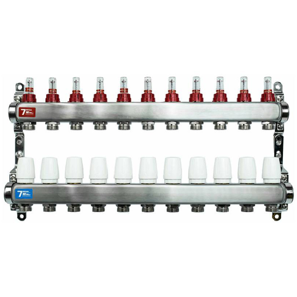 Коллекторные блоки выпускаются с количеством выходов от 2 до 12 и диаметром условного прохода коллекторов 1".