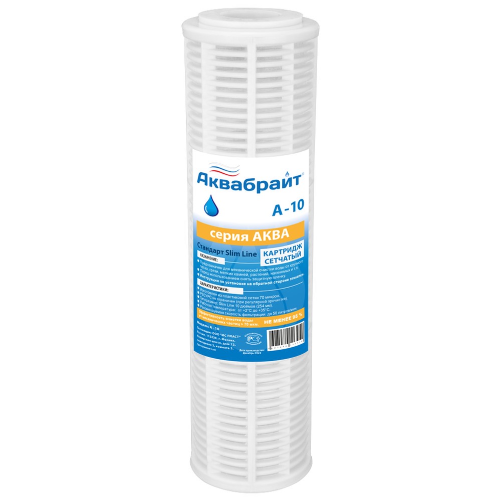 Картридж механической очистки воды многоразовый SL10 70 мкр из пластиковой сетки (А-10) (АкваБрайт)