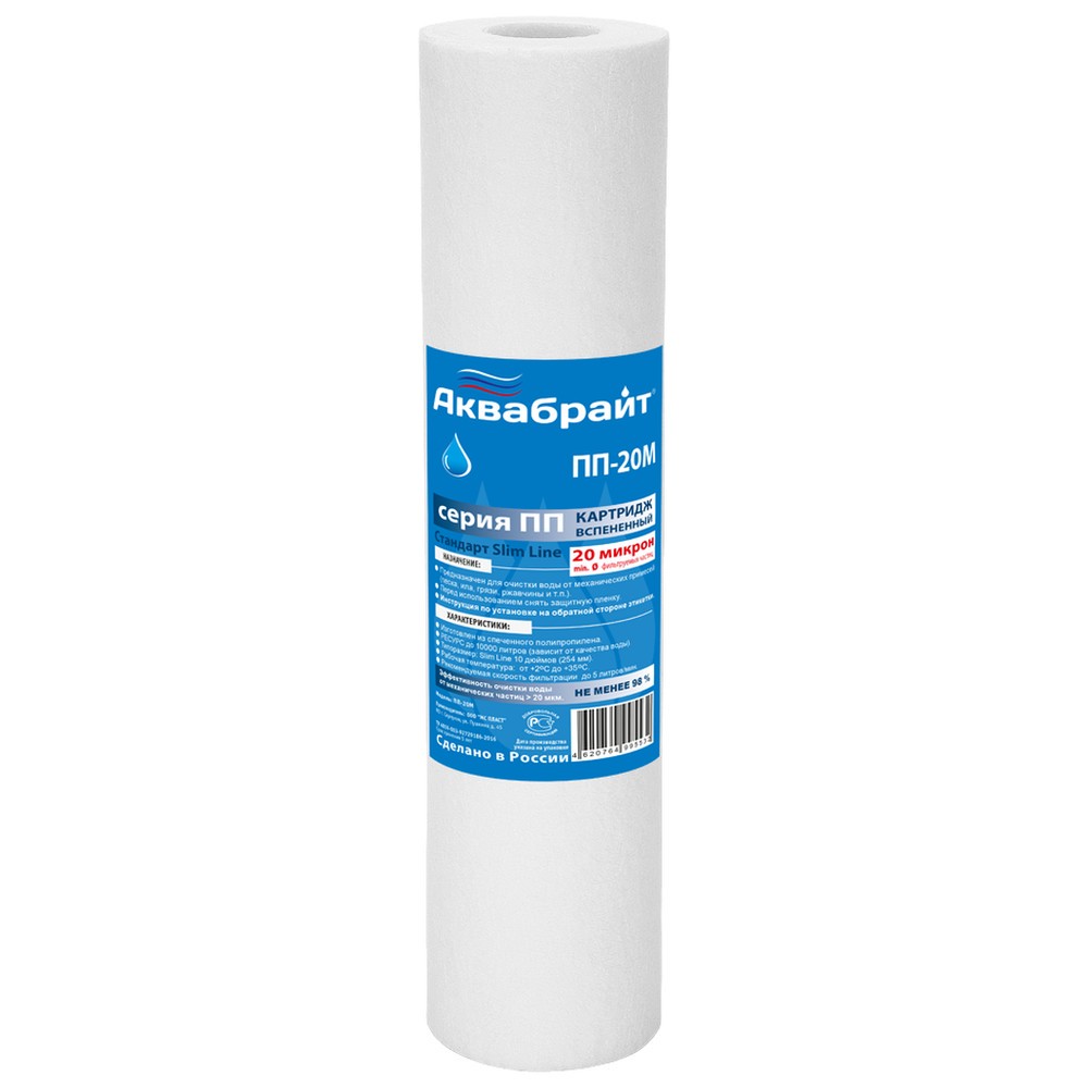 Картридж механической очистки воды SL10, 20 мкм, вспененный полипропилен (ПП-20 М) (АкваБрайт)