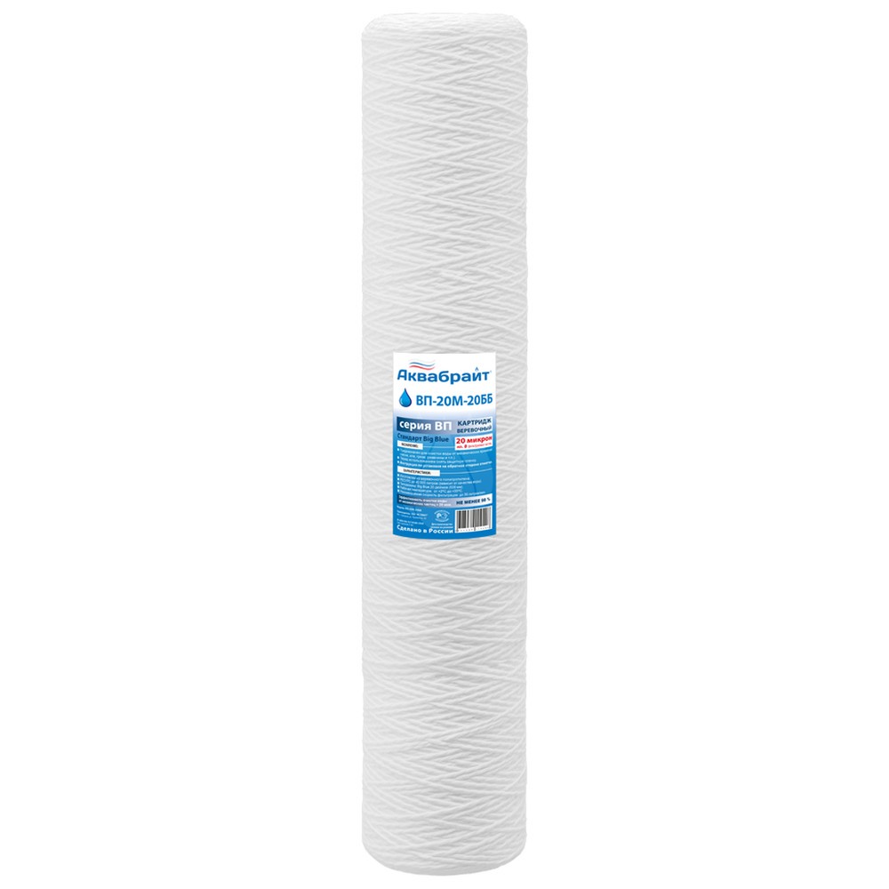 Картридж механической очистки воды ВВ20, 20мкм, полипропиленовая нить (ВП-20М-20ББ) (АкваБрайт)