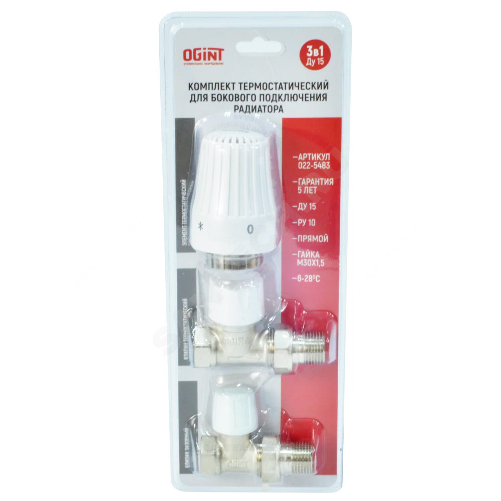 Комплект термостатический OGINT бок/п 3в1 Ду20 Ру10 прям жид/нап М30х1,5 6-28C двухтр