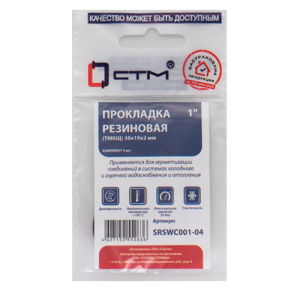 Прокладка СТМ 1" резина ТМКЩ 30х19х2 мм, SRSWC001-04, (4)