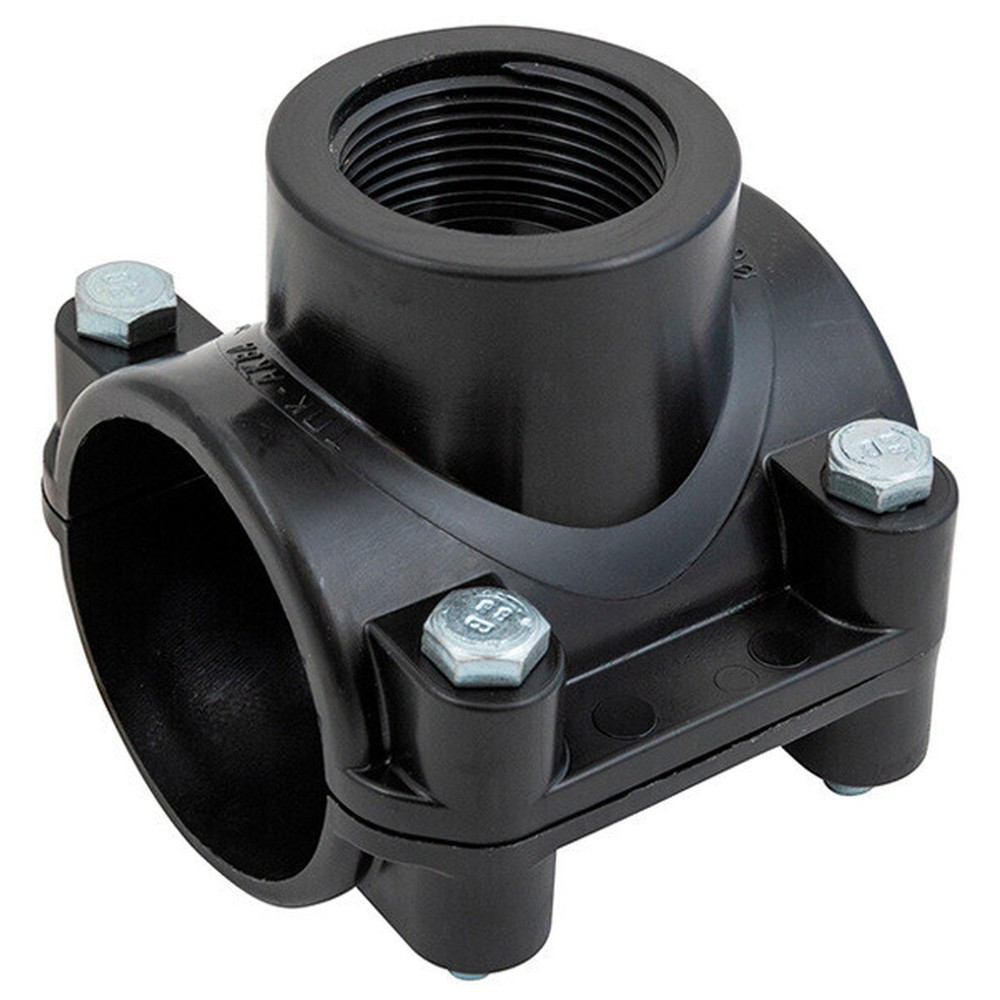 Седелка с внутренней резьбой предназначена для быстрой установки на основную (магистральную) пластиковую трубу дополнительного ответвления. Крепится к трубе ПНД при помощи зажимных болтов. Седелки хорошо зарекомендовали себя, как элементы быстрой врезки, а так же как герметичные резьбовые отводы, устанавливаемые без разрезания трубы.