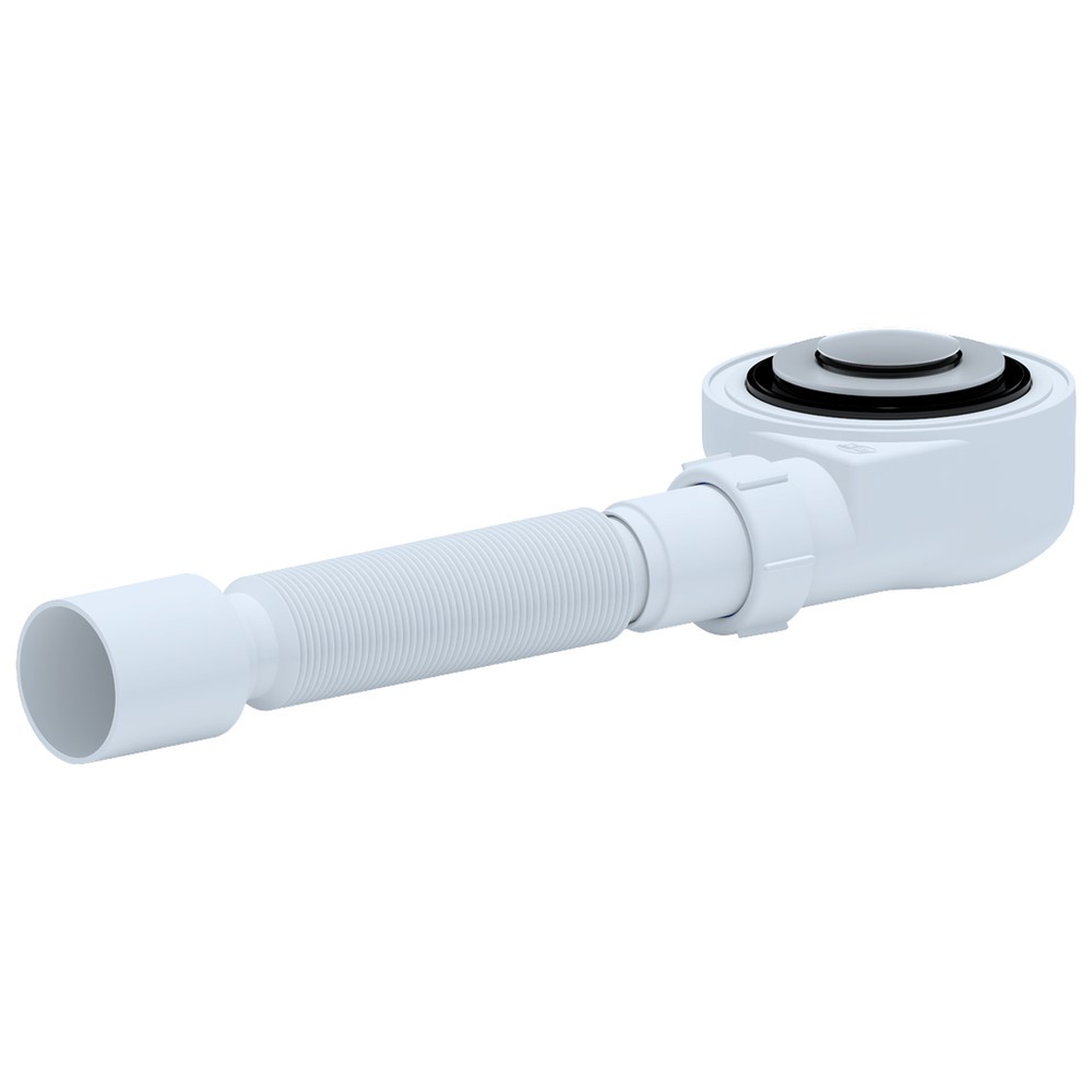 Сифон для поддона "АНИ" с гибкой трубой, нержавеющий выпуск, кнопка (Е455CLS) (Россия)