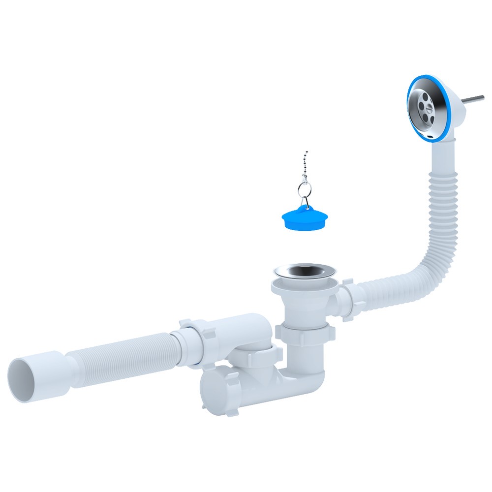 Сифон для ванны "АНИ" с переливом 1 1/2-40, нержавеющий выпуск (Е255) (Россия)
