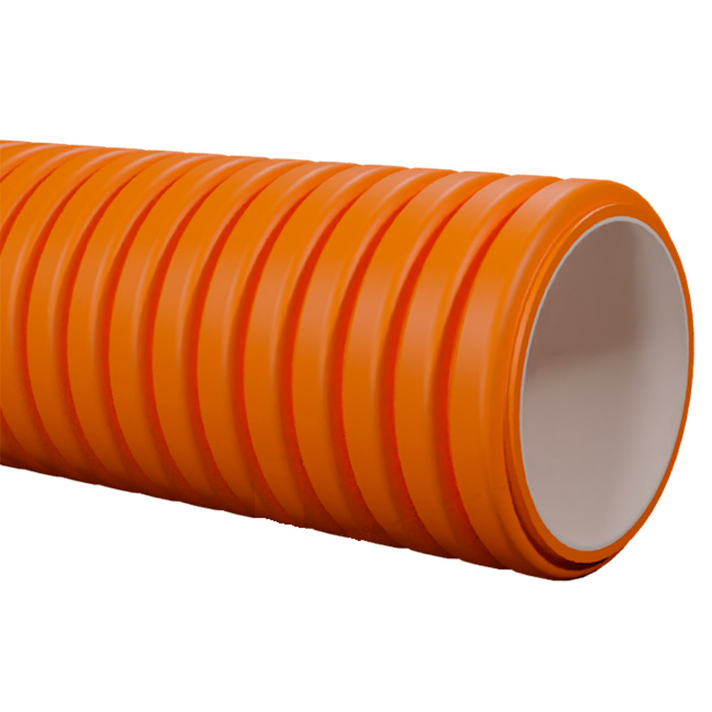 Труба гофрированная РГК двухслойная, производится из полипропилена. Предназначена для безнапорных трубопроводов, транспортирующих жидкости с температурой до +100 ˚С. Наружная гофрированная поверхность увеличивает жесткость изделий. Это дает возможность прокладки подобных труб на значительной глубине. Гладкий внутренний слой трубы не подвержен коррозии и отложению наростов, минимизирует сопротивление движения стоков.